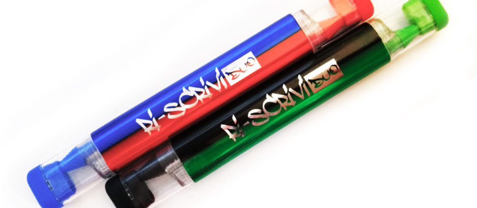 La particolarità di questa penna è la doppia punta da una parte scrivi con un colore e dall’altra con l’altro colore. Tutto in una penna. Il cappuccio lo utilizzi come gomma!